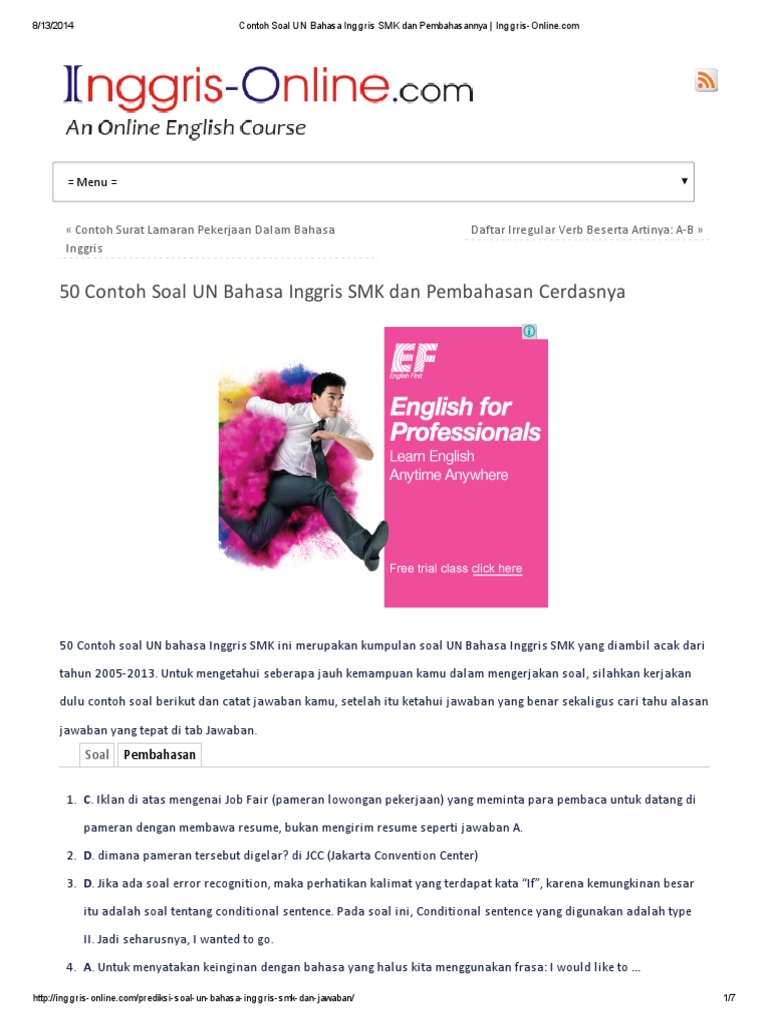 50 Contoh Soal Un Bahasa Inggris Smk Dan Pembahasan from reader012.docslide.net Check spelling or type a new query. Maybe you would like to learn more about one of these? We did not find results for: Soal un bahasa inggris smk 2015 dan pembahasannya.