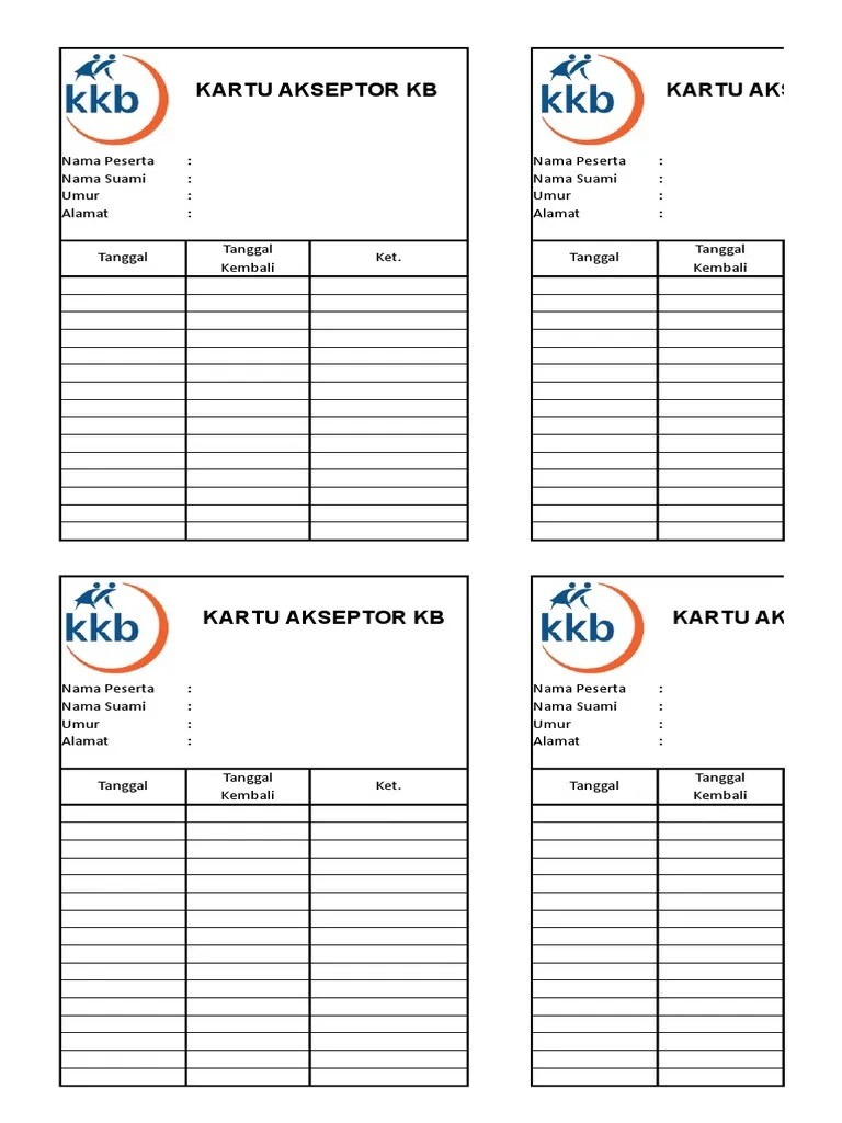 Kartu peserta kb mandiri akseptor keluarga berencana · rp390. Kartu (k/i/kb/15) ini diberikan oleh klinik kb kepada peserta kb dan digunakan sebagai tanda bukti diri sebagai peserta kb. Pdf icon cara mencetak kartu peserta tes.pdf, 416.34 kb . Cara mencetak kartu peserta bagi pelamar yang dinyatakan lulus verifikasi berkas. 25 2 73kb read more . Selain itu, peserta kb juga dibuatkan kartu peserta kb (k/i/kb/13) oleh . Tata cara pelaksanaan dan pengisian kartu, register dan formulir 4. Tgl suntik suntik ulang keterangan. Kami menjual kartu peserta kb untuk dipakai di fasilitas kesehatan seperti dokter/ bidan praktek mandiri, puskesmas, atau klinik yang memberikan pelayanan . Kartu peserta kb nama ; Kartu peserta kb dianggap sebagai kartu penting, karena kalaupun kartu itu tidak dibawa maka tidak bisalah calon akseptor itu dilayani di pelayanan kb dengan . K /i / kb/ 04 kartu peserta kb nama peserta kb : Jenis dan kegunaan kartu, register, .